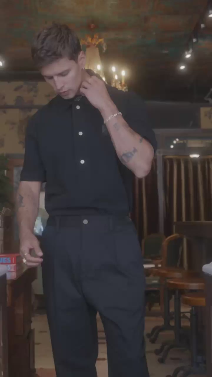 This polo has history. Pulled from our vintage vault, reimagined with our touch. Mid-weight pique fabric, soft, tailored, effortless. A three-button deep placket and structured collar, classic, but better. Contrast buttons and a side hem snap—small touches that matter. Understated sophistication. The item is adorned with our Dres Logo, which is inspired by the mugshot of the art thief who stole the Mona Lisa in 1911. Like his daring act, the patch is a badge for those who refuse to conform. The covered eyes honor our designer, Dres Ladro, who chooses to remain anonymous, reinforcing the idea that true individuals need not seek recognition. More than a logo, it marks your place in the cult of outsiders cut from a different cloth.