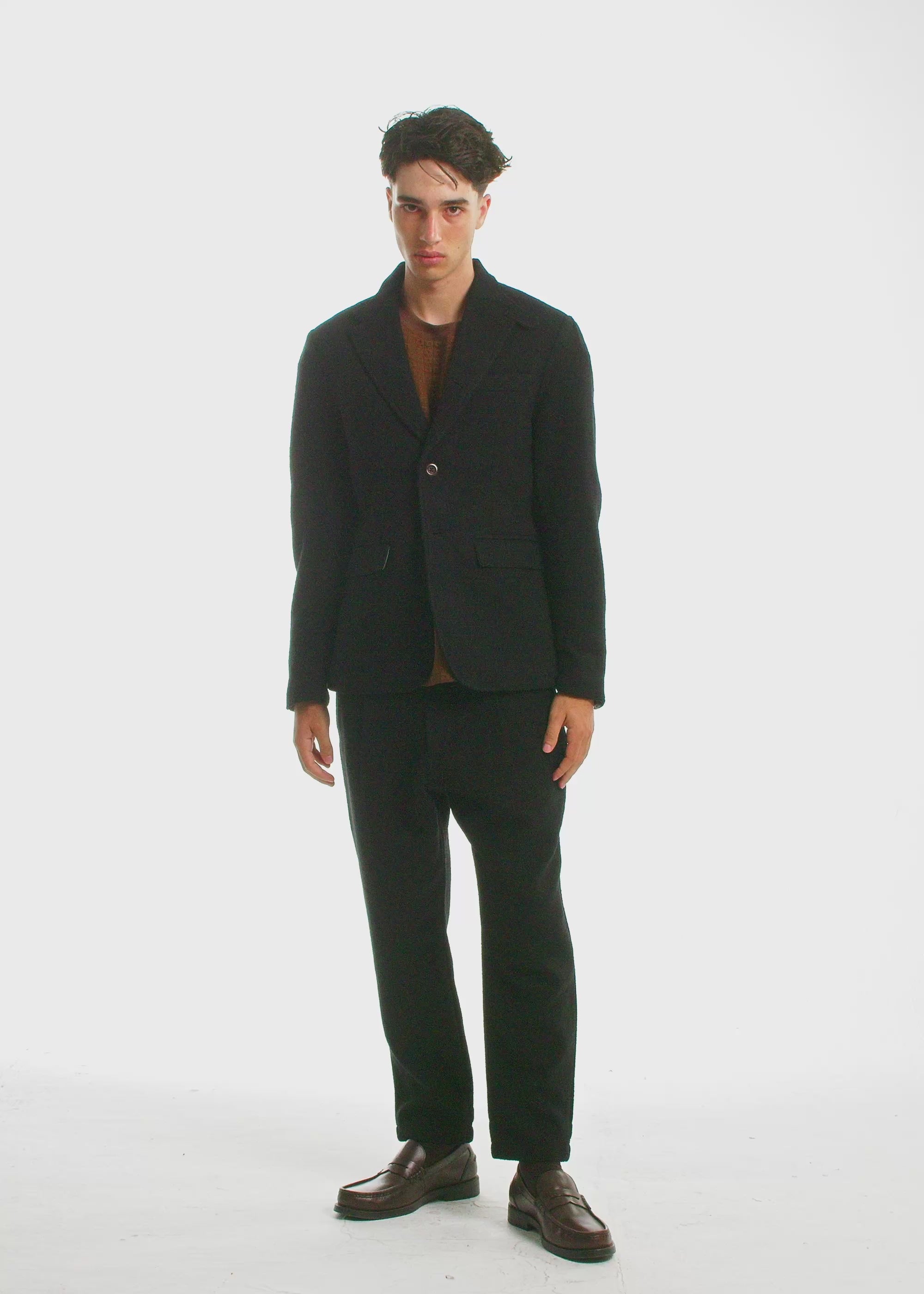 A structured wool-blend blazer. Subtle texture, intentional tailoring. Wears like a classic, moves like something smarter. Classic notch lapels. functional cuffs. Cut from wool-blend textured crepe fabric that carries depth without flash. Structure without stiffness. It’s for those who won’t settle for the ordinary. Pair it up with the matching pant.