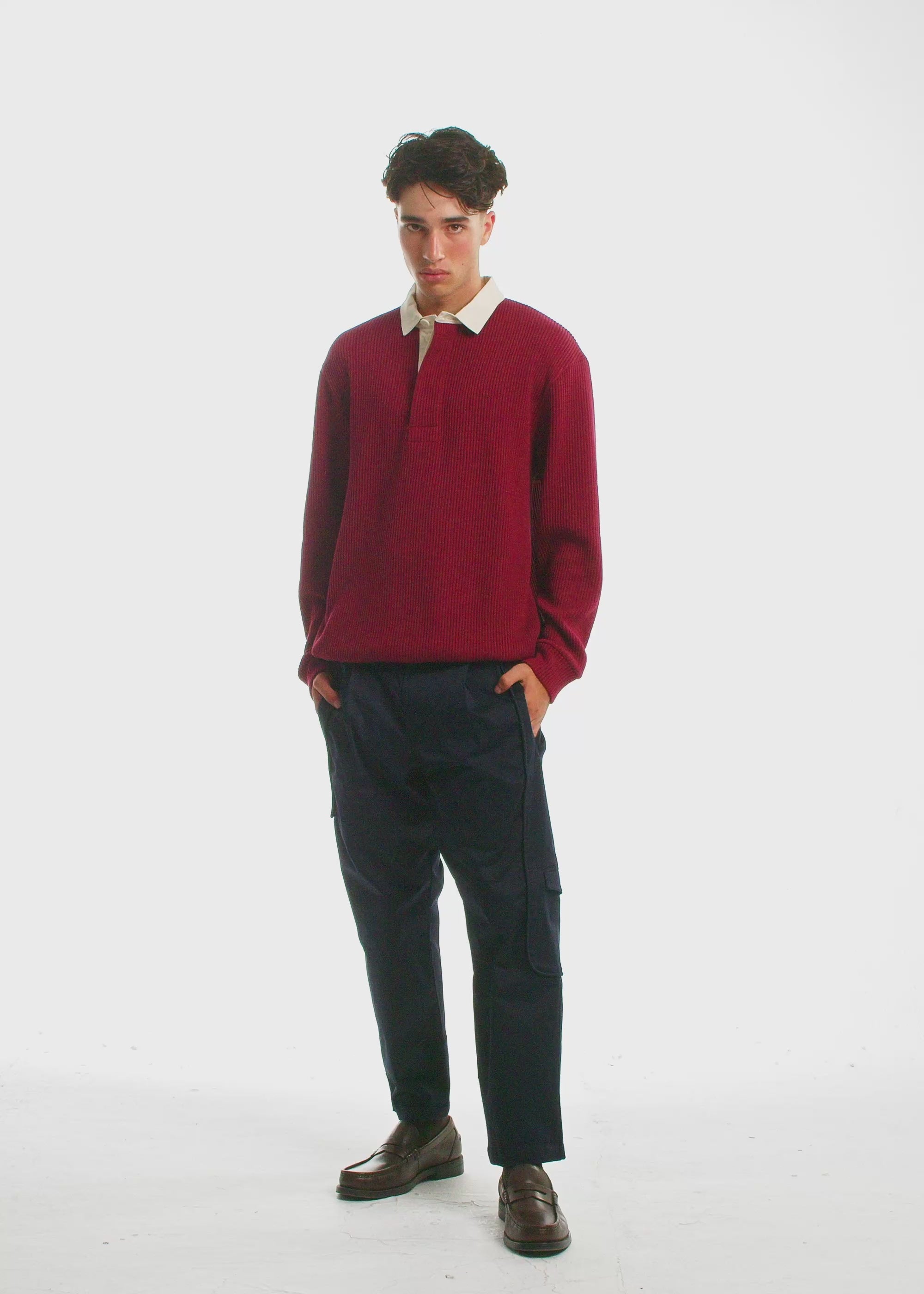 This piece rewrites the prep rule book. Inspired by the rugby shirts that once lined New York’s downtown menswear shops in the ’70s, we reimagined it through a modern lens. Cut from a corded knit, it balances the polish of tradition with the edge of street culture. A hidden drawstring lets you shape the fit because control should always be yours.