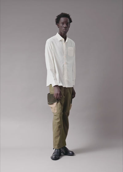 The Swiss Dot Shirt takes minimalism and gives it texture. Crafted from an ivory cotton dobby with raised microdots that catch light just enough to make their presence known. It’s precise, polished, and designed for those who move quietly but leave an impression.