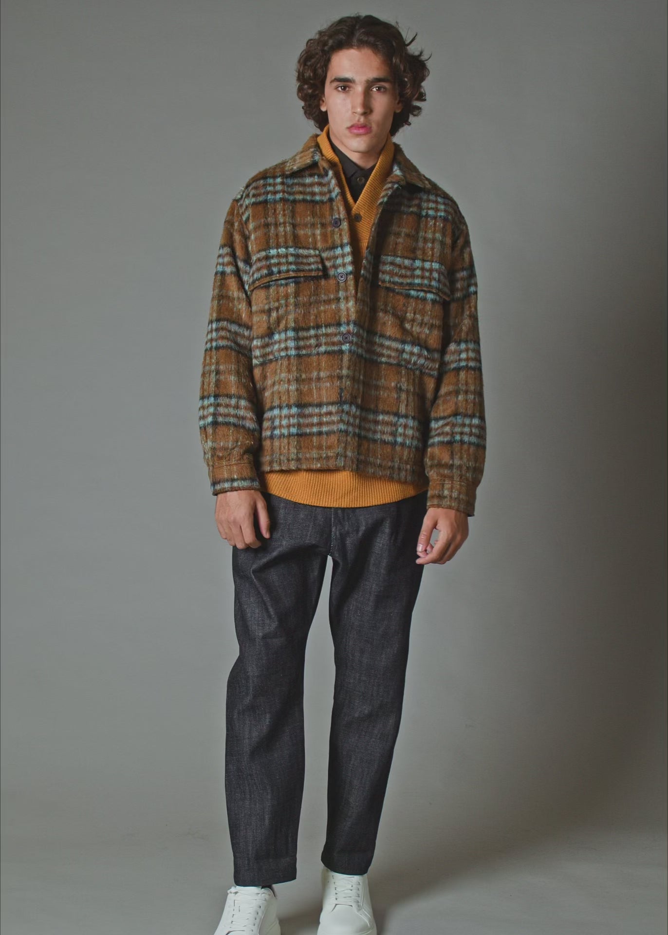 Propaganda is when information is twisted to influence public opinion and promote an agenda by manipulating facts or withholding truths. The durable Propaganda Jacket is a militant design inspired by the concept of misconception. The truth of this jacket's detailing is not evident until you peel back the layers. It is a mid-weight utilitarian jacket made of soft felted material. Wear this as a shirt jacket or outerwear piece—deliberately designed to transition seamlessly from indoors to outdoors. The under collar features a button-fastening detail that secures the collar up and in place, functioning as a wind guard.